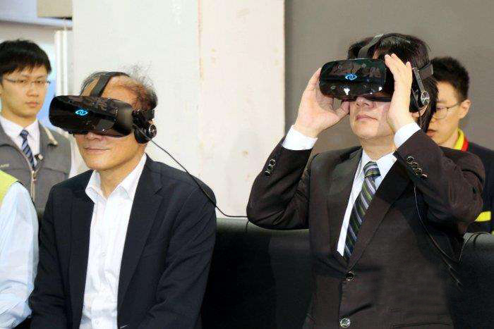 賴(lài)清德(右)年初在臺(tái)南陪林全(左)體驗(yàn)VR(虛擬實(shí)境)。(中評(píng)社圖)