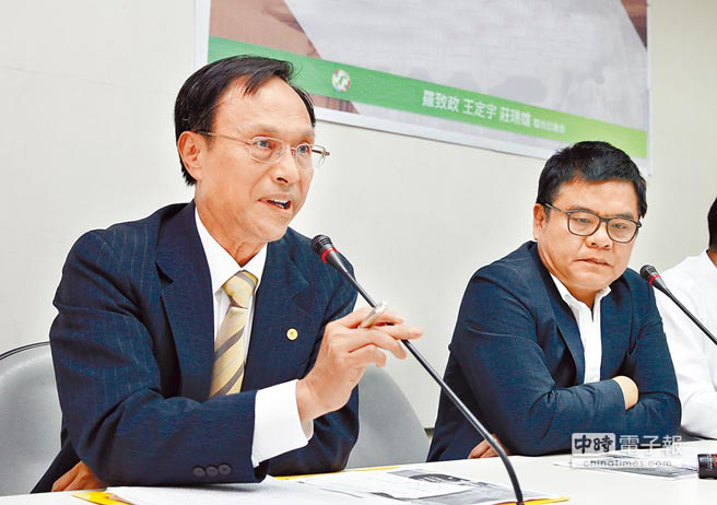 民進(jìn)黨“立委”莊瑞雄等人(右)與臺(tái)外事官員共同召開記者會(huì),說明“外交”困境。(圖片來源:臺(tái)灣《中時(shí)電子報(bào)》)