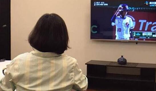 蔡英文昨晚曬出自己在電視機前觀看球賽的照片。(圖片來源:臺灣“中時電子報”)