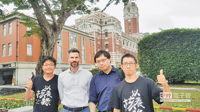 “氣候先鋒者聯盟”成員,左起黃其君、沙倫博格、黃士修、楊家法。(圖片來源:臺灣《中國時報》)