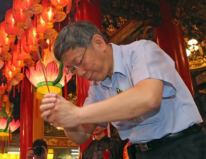臺北市長柯文哲8日出席松山慈佑宮天上圣母1059周年祝壽三獻(xiàn)大典。 (圖片來源:臺灣“中時(shí)電子報(bào)”)