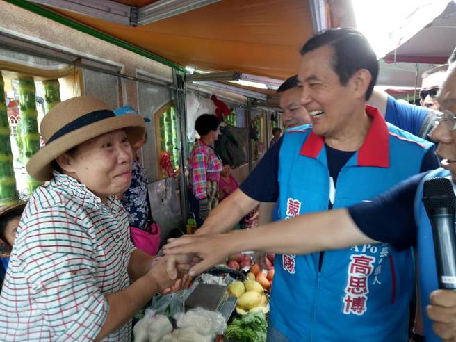 現場有包水餃攤販為與馬英九握手,事先洗手等待,看到馬英九本尊,直呼“我愛你”。(圖片來源:臺灣《中時電子報》)