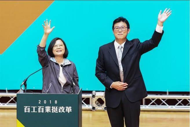 民進黨3日主辦“百工百業挺改革大會–臺北場”,蔡英文(左)為選情一直低迷的姚文智(右)加油打氣。(圖片來源:臺灣“中時電子報”)