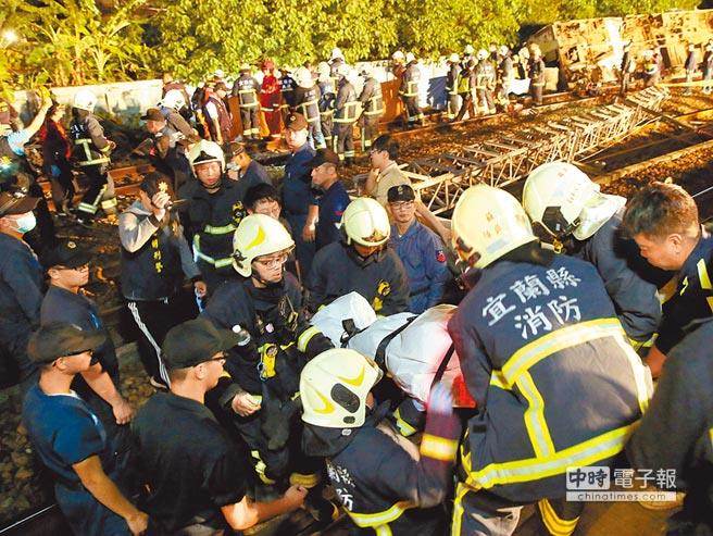 臺鐵第6432車次普悠瑪列車滿載366名乘客,21日下午4時許行經(jīng)宜蘭縣蘇澳新馬車站時突然發(fā)生翻覆意外,相關(guān)單位持續(xù)搜救中。(圖片來源:臺灣“中時電子報(bào)”)