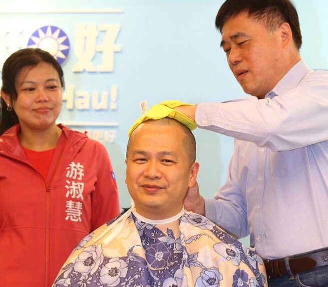 國民黨臺北市議員羅智強(qiáng)(中)又有驚人之舉,繼選前剃光頭照亮同黨同志游淑慧(左),他宣布四階段參選臺灣地區(qū)領(lǐng)導(dǎo)人,以行動改造國民黨。(圖片來源:臺灣《聯(lián)合報》)