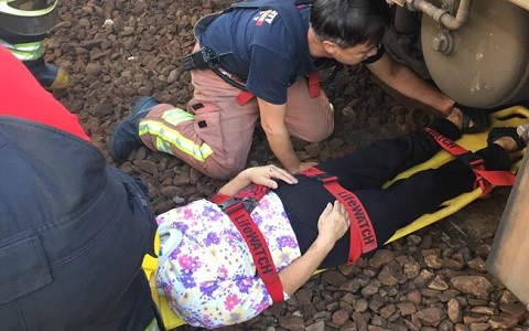 中國臺灣網12月4日訊 據臺灣“中時電子報”報道,年約60歲的老婦今早8時許因不明原因跌落鐵軌,身體卡在車底,所幸路邊民眾見狀立刻報警,老婦竟奇跡似的未被火車壓傷或撞到,警方正在厘清婦人落軌原因。