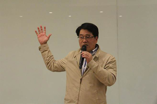 民進黨黨主席補選后選人游盈隆今上午在花蓮舉行分享會,短短40分鐘游盈隆炮火猛攻,直指民進黨道德敗壞。(圖片來源:臺灣“中時電子報”)