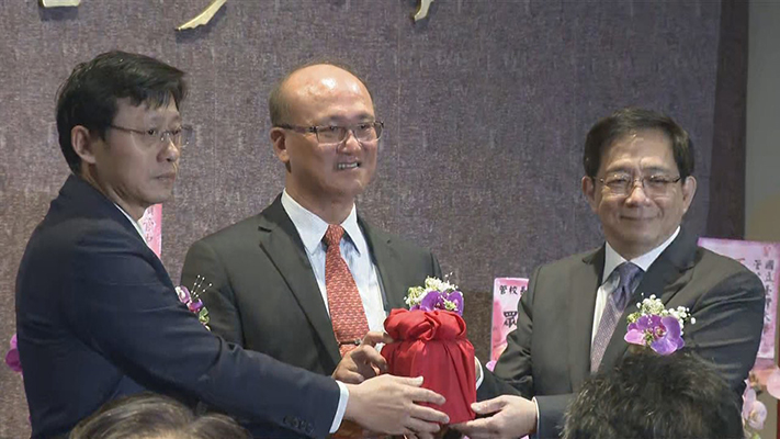 臺大新校長管中閔上午接任臺大校長,致詞時引述美國前總統(tǒng)約翰遜的話“昨天的風(fēng)雨過去了,明天才是我們奮斗的戰(zhàn)場”。(圖片來源:臺灣《聯(lián)合報》)