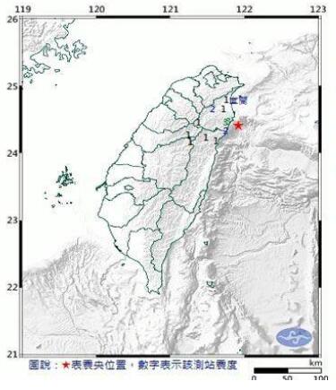 宜蘭外海發生4級地震。(圖片取自臺媒)