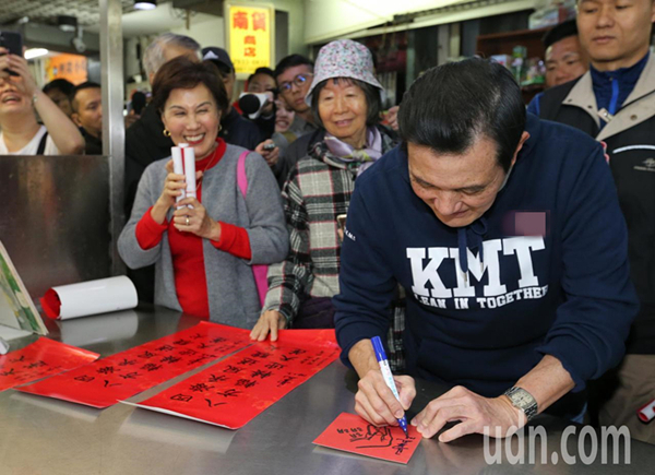 中國臺灣網(wǎng)2月3日訊 據(jù)臺灣《聯(lián)合報》報道,今天是“小年夜”(臺灣地區(qū)把“除夕前一天”稱為小年夜),前臺灣地區(qū)領導人馬英九依慣例,一早就陪著姐姐馬以南一塊到住家附近的興隆市場買菜、發(fā)春聯(lián),不少民眾看到馬英九都顯得相當興奮,合照、簽名不斷,還有攤商拿著“胡牌”的春聯(lián)要馬英九簽名,笑稱“我過年打麻將全都靠你了”。