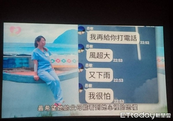 蔡邑敏去年2月5日在執(zhí)行轉(zhuǎn)送病患任務(wù)時(shí)坐上黑鷹直升機(jī),她傳信息給家人說(shuō),“降不降的下來(lái)還不知道”“風(fēng)超大又下雨”“我很怕”,沒(méi)想到這些最后竟成遺言。(中國(guó)臺(tái)灣網(wǎng) 賈若瀾)