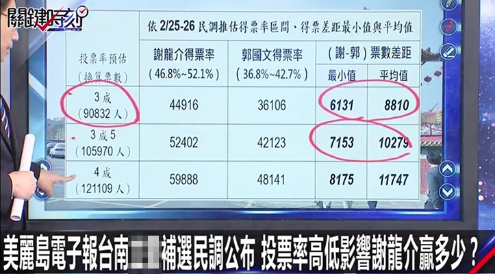 吳子嘉在政論節目上公布民調。(圖片取自臺媒)