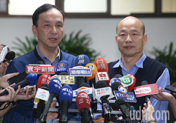 前新北市長朱立倫(左)專程到高雄拜會高雄市長韓國瑜(右)(圖片來源:臺灣“聯(lián)合新聞網(wǎng)”)