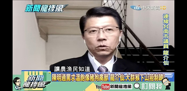 謝龍介表示,韓國瑜的訂單之前就被酸是“空頭訂單”,如果未來農漁產品賣不出去,就坐實了空頭訂單的說法,綠營可以說是招數盡出,陳明通連“禽獸不如”都罵出來,民眾想求溫飽叫做豬狗禽獸嗎?他接著說,高雄的綠營“立委”還要發動罷免韓國瑜,“大群猴子都下山”,韓國瑜未來一定不好過,臺當局可能擋住不讓農漁產品出口,所以農漁民要看清楚,東西出不去是因為臺當局的關系,可能到時候再來假好心說要幫助農漁民,但相信臺灣民眾的眼睛是清楚的。