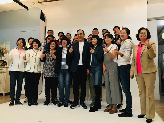 前新北市長朱立倫(前排中)今(3日)下午拍攝2020宣傳照,新北市議會黨團(tuán)前來聲援并拍攝合照,大家大喊“阿倫加油”(圖片來源:臺灣“聯(lián)合新聞網(wǎng)”)