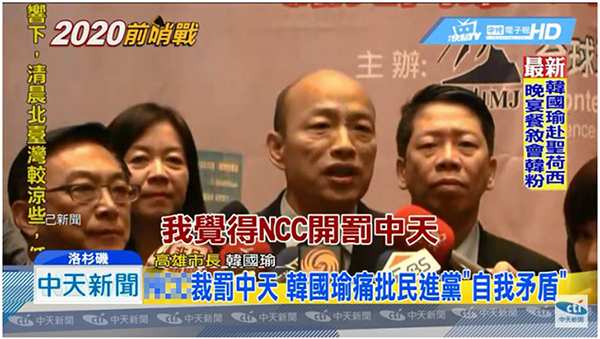"NCC"再罰中天100萬 韓國瑜批綠營拿到權力自我打臉