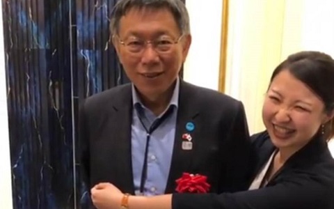 擔(dān)任柯P口譯的柯粉葉乃萱,被旁邊的工作人員拱去抱柯。(圖片來自臺(tái)媒)
