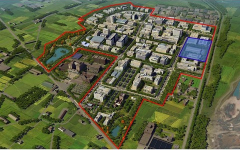 紅色框線為和發園區范圍,右上方藍色方塊是鴻海購買土地。(圖片來自臺媒)