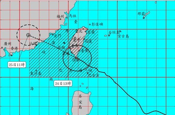 中國臺灣網8月24日訊 據臺灣“中時電子報”報道,據臺灣“中央象局”表示,“白鹿”臺風中心今天(24日)中午13:00點已在恒春半島上屏東縣滿州鄉登陸,成為近2年來第1個侵襲臺灣的臺風。