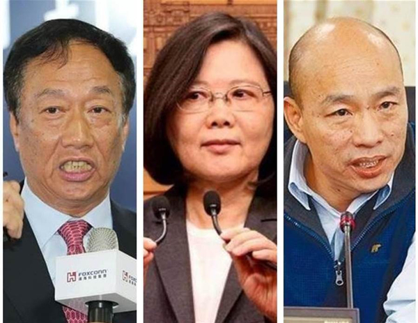 左起郭臺銘、蔡英文和韓國瑜。(圖片來源:臺灣“中時電子報”)