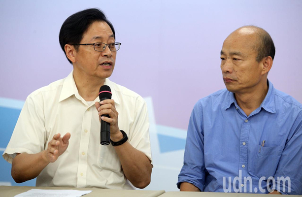 韓國瑜“國政顧問團(tuán)總召”張善政(左)、國民黨2020參選人韓國瑜(右)(圖片來源:臺灣《聯(lián)合報》)