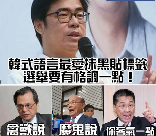 中國臺灣網(wǎng)11月4日訊 據(jù)臺灣“中時電子報”報道,韓國瑜稱民進(jìn)黨是“政治泡面”,“行政院副院長”陳其邁則回批,這款“韓式語言”愛貼人標(biāo)簽、抹黑,選舉該有格調(diào)點,不要用惡質(zhì)選舉語言來發(fā)言。對此,臉書粉絲專頁“破壞王沖康哥”貼出“行政院長”蘇貞昌等三人的照片,并諷刺表示“請陳其邁不要打臉自己的黨內(nèi)同志!”
