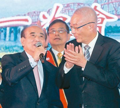 王金平(左)昨晚力挺吳敦義(右)列不分區“立委”,表示“在安全名單里面,不用在第一名”。(圖片來源:臺灣《聯合報》)