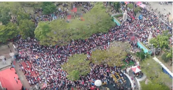 韓國瑜周末臺南大造勢,空拍影片曝光,現場滿滿的人潮。(圖片取自臺媒)