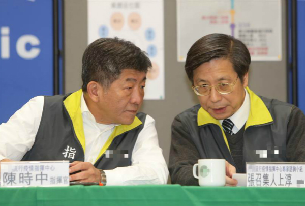 臺(tái)灣流行疫情指揮中心指揮官陳時(shí)中(左)與專家咨詢小組召集人張上淳(右)。(圖片來(lái)源:臺(tái)灣“中時(shí)電子報(bào)”)