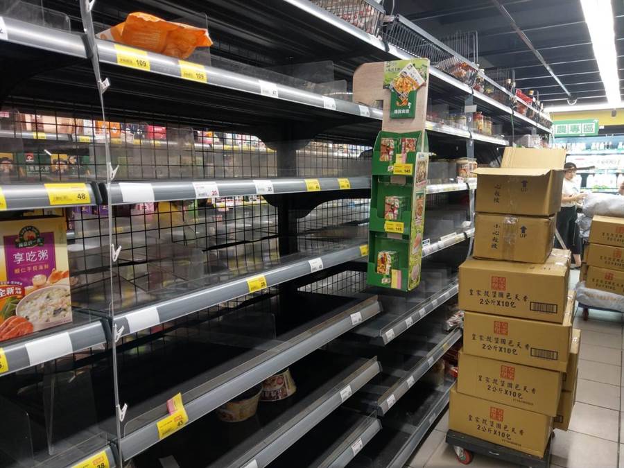 不過,有臺灣網(wǎng)友昨天到附近賣場,發(fā)現(xiàn)架上所有東西都被搶購一空。通過網(wǎng)友發(fā)布的照片顯示,貨架上的東西已經(jīng)一掃而空,只剩下標(biāo)價,連米都所剩無幾,讓網(wǎng)友大嘆。