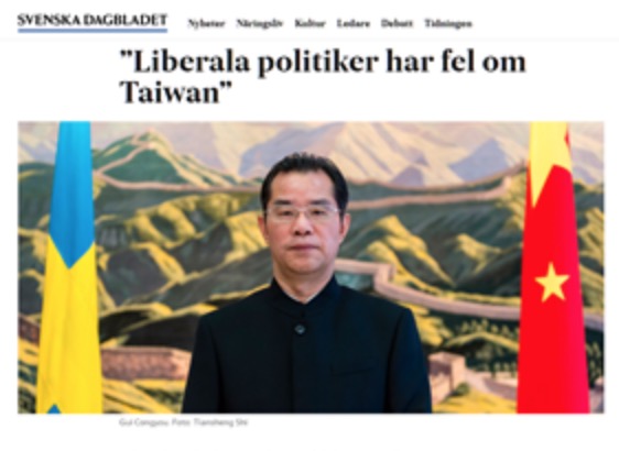 駐瑞典大使桂從友在《瑞典日報》發(fā)表題為《少數(shù)瑞典政客不應就涉臺問題發(fā)表錯誤言論》的署名文章。(來源:外交部官網(wǎng)截圖)
