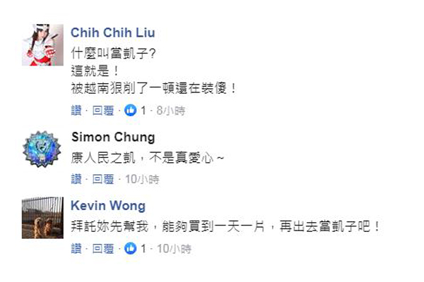 有島內(nèi)民眾在社交媒體評(píng)論稱,民進(jìn)黨當(dāng)局是“被越南狠削了一頓還在裝傻”。更有民眾直言“拜托先幫我能夠買到一天一片口罩,再出去當(dāng)凱子吧!”
