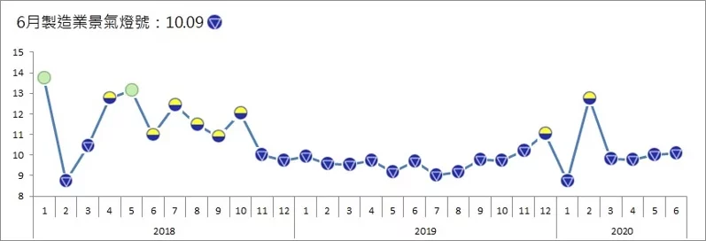 中國臺灣網7月31日訊 據臺灣《經濟日報》報道,臺灣經濟研究院30日發布6月制造業景氣燈號,連續第四個月呈現代表景氣衰退的藍燈。臺經院指出,盡管連續四個月藍燈,但景氣信號分數已連續兩月走高,顯示臺灣制造業景氣隨境外需求回升而逐月復蘇。