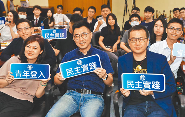 傳綠營為反制藍營“割萊委”行動,也將提罷免國民黨主席江啟臣(前排中)、羅智強(前排右)、謝龍介等人。(圖片來源:臺灣“中時新聞網”)