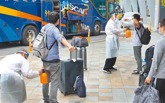 圖為搭乘日本航空自印度返臺的旅客。(圖片來源:臺灣“中時新聞網”)