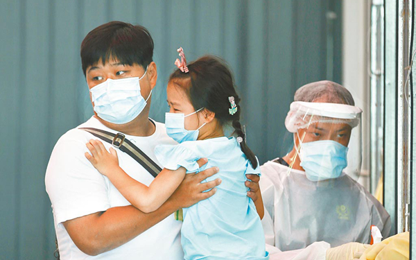 圖為篩檢現場的小朋友剛檢測完。(圖片來源:臺灣“中時新聞網”)