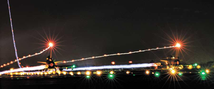 資料圖:東部戰(zhàn)區(qū)海軍航空兵某旅組織夜間飛行訓(xùn)練。(圖片來(lái)源:國(guó)防部網(wǎng))