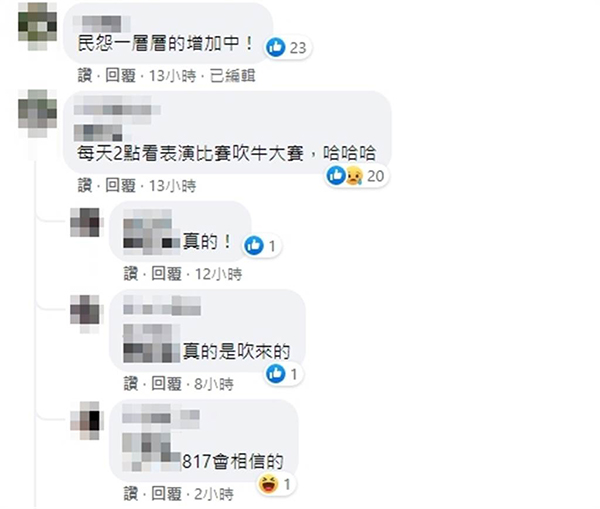 島內網友留言截圖。(圖片來源:臺灣“中時新聞網”)