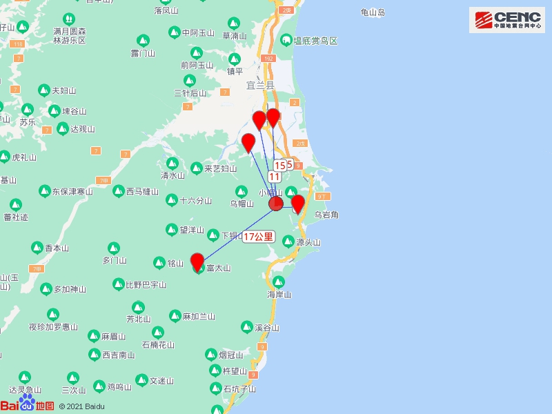 報道說,震中距蘇澳鎮4公里、距冬山鄉11公里、距五結鄉15公里、距羅東鎮15公里、距南澳鄉17公里,距宜蘭縣24公里,距臺北市61公里。