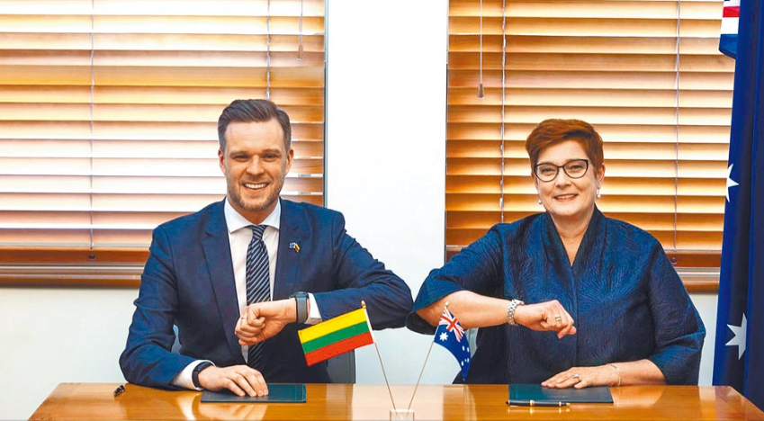 立陶宛外長(zhǎng)(左)與澳大利亞外長(zhǎng)(右)。(圖片來(lái)自臺(tái)媒)
