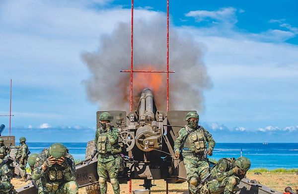 臺軍11日在屏東楓港執(zhí)行重炮射擊訓(xùn)練。(圖片取自臺媒)