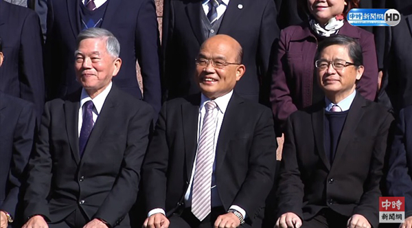 中國臺灣網1月30日訊 據臺灣“中央社”報道,臺行政主管部門負責人蘇貞昌今天(30日)主持行政部門臨時會議,會中通過“內閣”總辭案,隨后全員循慣例至該機構中央大樓前廣場拍攝大合照。