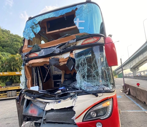 臺灣一輛載有45人客運車追撞大貨車 3人受傷