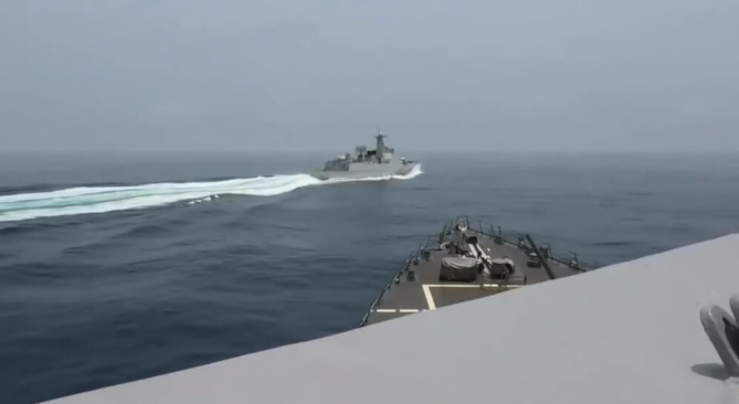 6月3日,美國“鐘云”號驅逐艦、加拿大“蒙特利爾”號護衛艦強闖臺灣海峽,被我052D驅逐艦阻攔。美國與加拿大方面卻炒作稱,中國軍艦以危險動作攔截美艦,險些釀成兩艦相撞事故。