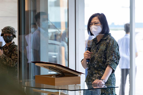 蔡英文視察臺(tái)軍“漢光演習(xí)”。(圖片取自臺(tái)媒)