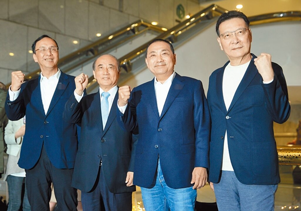王金平(左二)日前允諾接下中國國民黨2024參選人侯友宜(右二)全臺后援會總會長。(圖片取自臺媒)