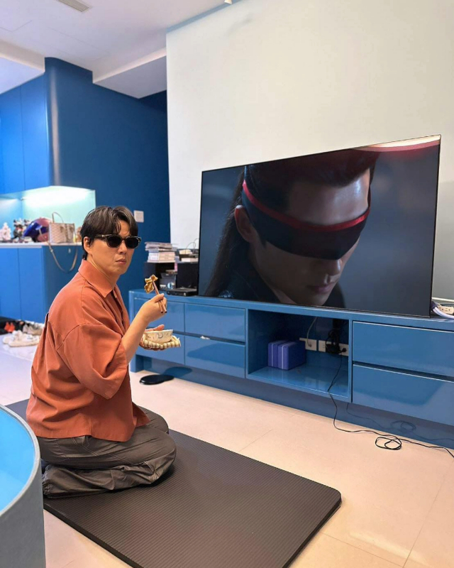 蕭煌奇在社交媒體曬出生活照,只見他當時正在吃飯,而人跪在電視機前觀看《慶余年》,劇中角色“五竹”眼睛被布蒙上,畫面再配上蕭煌奇,相當詼諧。