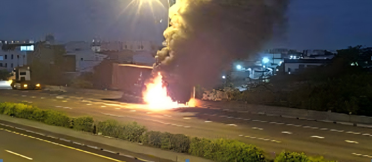 從現(xiàn)場畫面可見,聯(lián)結(jié)式卡車燃燒后,火勢相當(dāng)大,濃濃黑煙也直竄天際。對此,高速公路局中區(qū)養(yǎng)護(hù)工程分局表示,事故發(fā)生后無回堵情況,也呼吁路人小心駕駛。(編輯/王博偉)