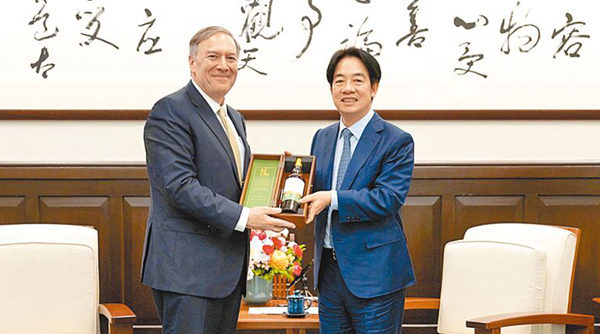圖為蓬佩奧竄臺時(shí)與賴清德見面。(圖片取自臺媒)