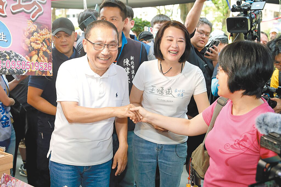 新北市長侯友宜跨區到臺北市陪民代王鴻薇掃街。(圖片來源:臺灣“中時新聞網”)